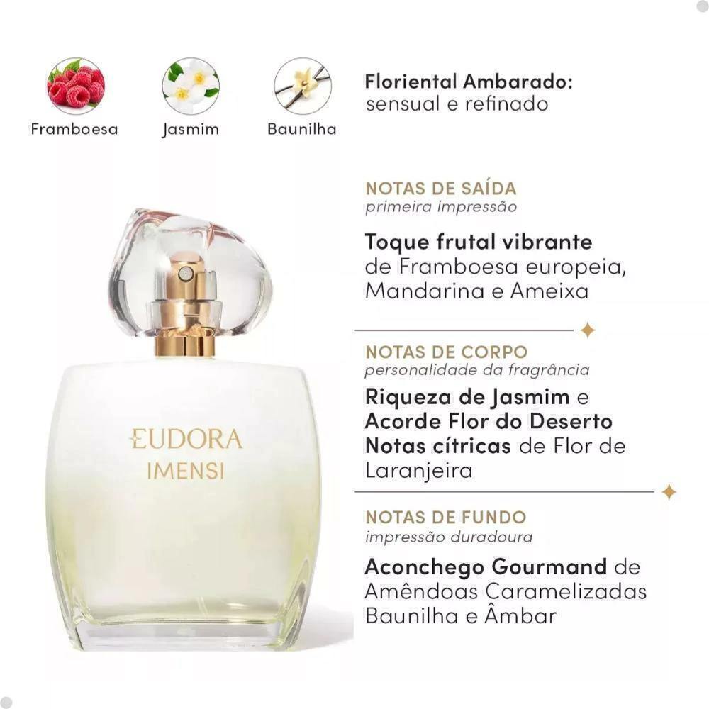 Conjunto feminino com desodorante colônia Imensi floriental ambarado e body spray Eudora. Para quem ama a liberdade.